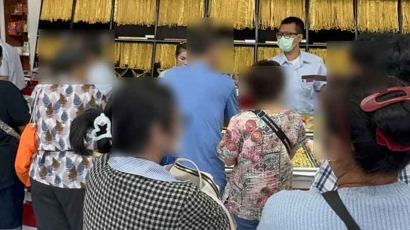 根据泰国黄金商协会于上午9时04分公布的价格数据,国内金价较前一交易日显著下调。受此影响,耀华力整条街道的金店前人潮不断,部分店铺在营业前就已有顾客排队等候办理交易手续。 多家金店业者表示,金价开市即出现大幅回落,刺激了大量散户投资者进场“逢低买入”(Buy on Dip),尤其是此前等待价格回调的买家迅速行动。同时,也有部分民众选择趁机出售手中黄金锁定利润,或基于个人资金安排进行资产调整,形成买卖双向活跃的局面。