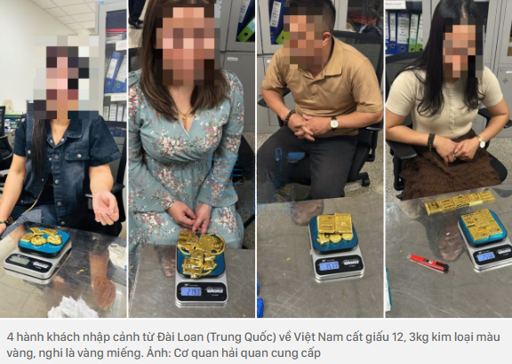 泰国华人网讯 越南内排国际机场海关近日查获一起严重走私案件,4名自中国台湾地区入境旅客试图携带总计12.3公斤黄金“蒙混过关”,被当场抓获。海关通报显示,这些黄金大多藏匿在旅客的内衣和内裤中,意图规避海关申报及安检。