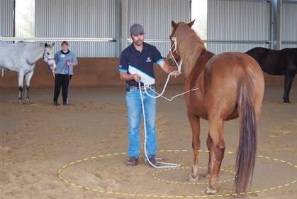 美国马术训练师雷-亨特有句名言“通向马心灵的道路,首先要通过它的脚”。 正如他所解释的那样,与马匹看成是一种师生关系;你是老师,马是学生。我必须能够帮助它。高级运动员非常了解自己的身体,他们知道自己的工作,任何人都可以训练它们,无论是盛装舞步马、赛马还是牛马。但这只是百分之一,甚至更少,那么还有一些马可能是运动型的,但需要一点支持。了解我们的马,知道它们的脚在哪里,可能是改善这个动作或跳得更高一点的区别。试图让它变得简单,并尽可能早地从基础知识开始,这样你就能与你的马一起发展并获得和谐。 马所知道的一切是正确的,我们教给它。马知道的所有错误,也都是我们教给它的。马的实际学习方式是通过压力和释放。但不是压力导致了马的学习,而是压力的释放。 压力是一种突然的东西,是一种真正的物理压力,但它要简单得多。例如,当你通过缰绳进行接触时,这就是压力。对于一匹敏感的马来说,你走到院子里就是压力。你可以在不接触马的情况下教它很多东西,而我们可以在错误的时间释放压力,无意中教给马错误的东西。 学习的过程就像一段旅程,当接近目的地时,必须奖励并释放压力。旅程和目的一样重要。 练习1:侧身屈体