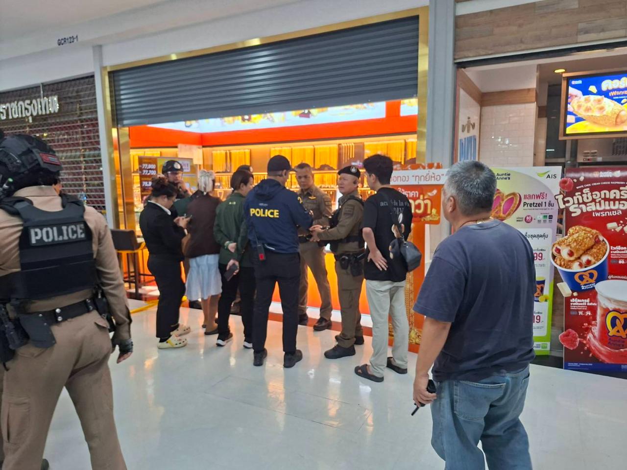 泰国华人网讯 3月10日晚,泰国佛统府一购物中心发生持枪抢劫金店事件,一名男子戴全盔遮面闯入商场金店,鸣枪示警后直接翻柜台抢走整盘黄金,现场店员被吓得不敢反抗。