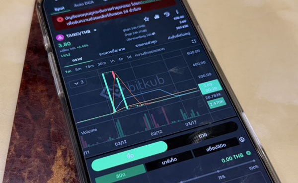 但当他在次日下午再次查看账户时,却发现从当天清晨约6时开始,其账户内的数字资产被多次逐步卖出,直至几乎全部清空。 特温称,这些资金随后被用于购买一种名为TAIKO的加密货币,共计约10538枚,每枚价格超过600泰铢,总金额约650万泰铢。 据其介绍,该代币平时价格约为3泰铢,但在约4分钟的时间窗口内,价格异常飙升至600多泰铢,涨幅超过600倍,随后又迅速跌回约3泰铢。由于这一异常波动,他账户内的资产价值最终仅剩不到5万泰铢。