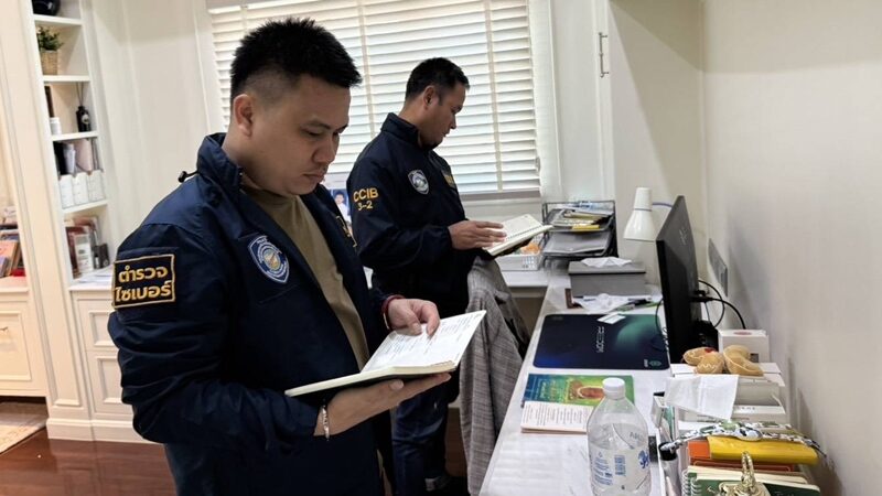 泰国华人网讯 3月14日,泰国网络警察突击搜查了巴吞他尼一名地方政要的兄弟住宅,涉及投资诈骗及洗钱案件。据悉,此次行动由网络警察总部指挥,配合法院搜查令对目标住宅进行全面查抄,查获了关键证据,并准备进一步调查相关资金流向。