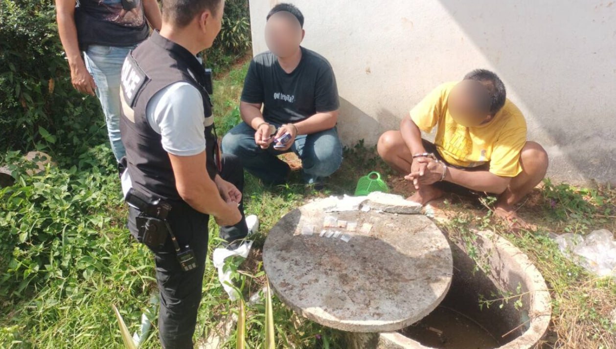 泰国华人网讯 2026年3月13日,泰国博他仑府警方对考猜松县宽卡农乡赛奈坎村8号房屋展开突袭行动,成功抓获两名处于保释期间的涉毒嫌疑人。此次行动由博他仑府警察局调查科副局长兼特警队队长维拉·钦芒中校带队,目标为39岁的房主帕努瓦特和38岁的阿皮瓦特,二人此前均因涉毒案件被捕并处于保释候审状态。 行动中,帕努瓦特试图将毒品冲入马桶销毁证据,但警员随后检查房屋后方化粪池并全面搜查,最终查获三袋共145粒冰毒药丸、四袋共5.1克冰毒及两套吸食工具,所有物品均被扣押作为证据。