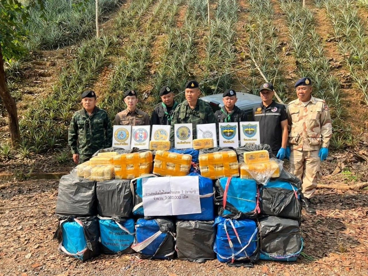 | 泰国华人网讯 清莱边境近日发生一起惊心动魄的毒品追捕事件,一辆皮卡车在试图逃避边境检查站时被边境巡逻士兵发现,车内藏匿高达300万粒冰毒,但司机趁机逃脱,踪迹全无。 事件发生后,警方立即对逃逸车辆及周边区域展开搜查,但未能找到嫌疑人。随即对皮卡车进行彻底检查,发现车厢内共计20个麻布袋,每袋约15万粒冰毒药丸,总计300万粒毒品。此类毒品一旦流入市场,将对社会尤其是青少年造成极大危害。