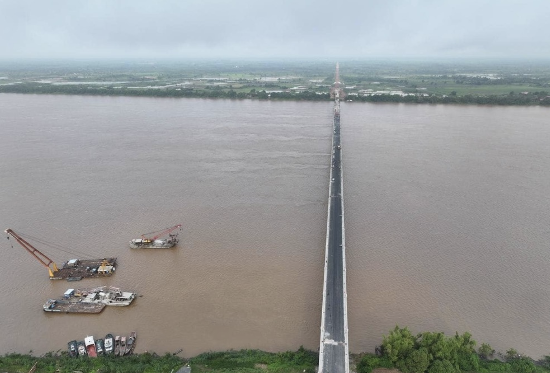 泰国华人网讯 由中国政府提供1.14亿美元优惠贷款建设的桔井湄公河大桥将于3月25日正式通车。 这座大桥横跨湄公河,全长1761米,是目前柬埔寨第三长的大桥。大桥连接桔井省布雷波拉萨县与切波雷县,于2023年1月2日正式开工建设,历时三年多建成。