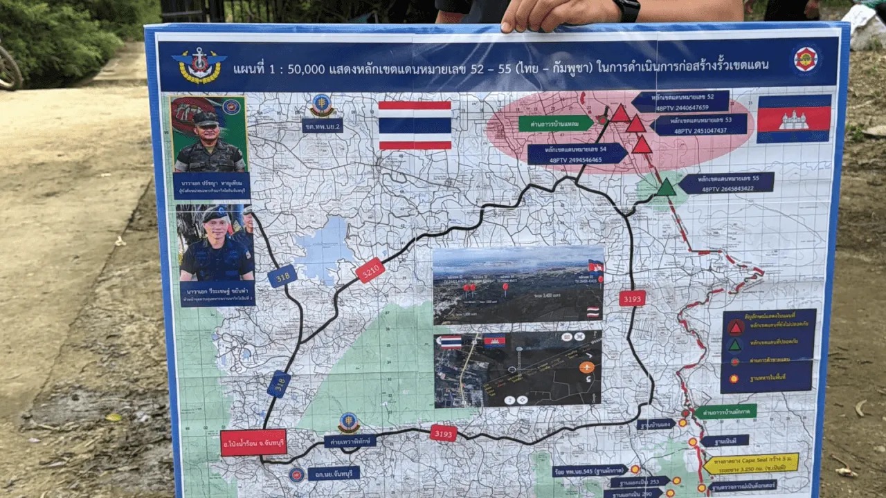 泰国华人网讯 近日,泰国军方公布了泰柬边境“安全围栏”项目的最新进展,计划于4月正式动工。尖竹汶府Pong Nam Ron县被选为先行试点区域,将沿边境建设围栏道路,总长约1310米,覆盖52至54号主要过境点,旨在加强国家安全,维护边境地区的和平与稳定。