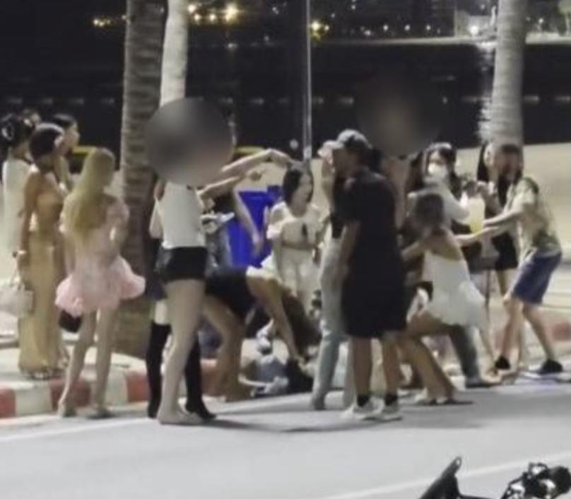 据现场目击者及警方信息显示,事发时间约为凌晨3点30分,地点位于芭堤雅南部步行街入口靠近海滩的停车区域。冲突起因源于一起手机丢失纠纷,双方互相指责对方偷窃,矛盾持续发酵,最终演变为大规模对峙。 在冲突发生前,双方曾于3月19日凌晨4点左右,在芭堤雅海滩路附近一家大型购物中心门前发生过第一次肢体冲突。现场视频在网络广泛传播,画面显示多名人员互相扇耳光、拳打脚踢,部分游客尝试劝阻,但也被卷入混乱之中。随后,芭堤雅警方赶到现场处置,并将相关人员带回警局。 尽管警方介入,但双方矛盾并未彻底化解,因此约定再次见面“解决问题”,最终导致3月20日凌晨的二次对峙事件发生。