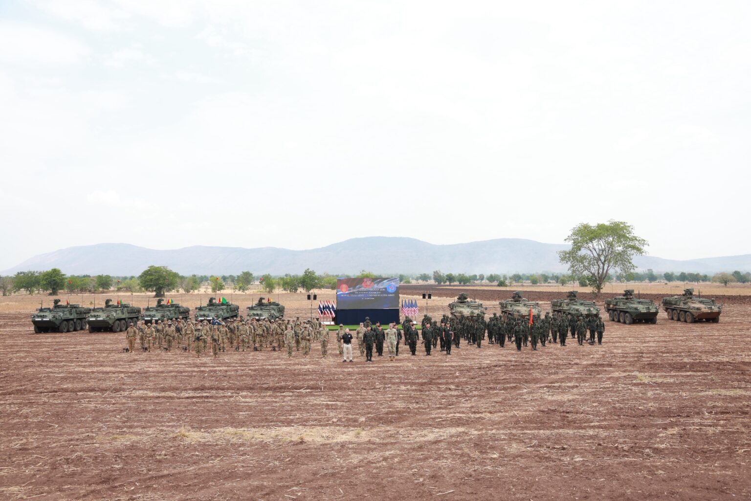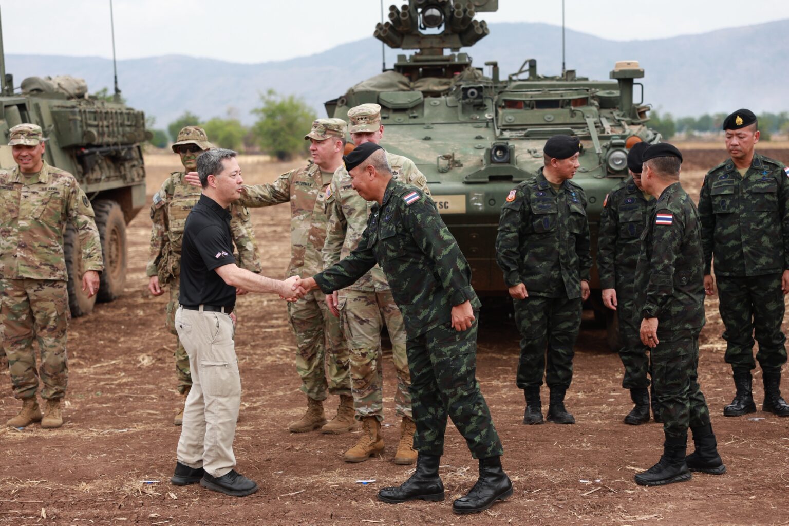 泰国华人网讯 2026年3月20日,在“哈努曼守护者2026”联合军事演习闭幕式上,美国太平洋陆军正式向泰国皇家陆军移交17辆“斯特瑞克”装甲车,标志着两国防务合作进一步深化。 交接仪式在洛布里府皇家泰国陆军航空中心举行,多位美泰高级官员出席,包括美国陆军太平洋司令部副司令乔尔·沃维尔中将、泰国皇家陆军总司令帕纳·克莱普洛图克上将,以及美国驻泰大使肖恩·K·奥尼尔。