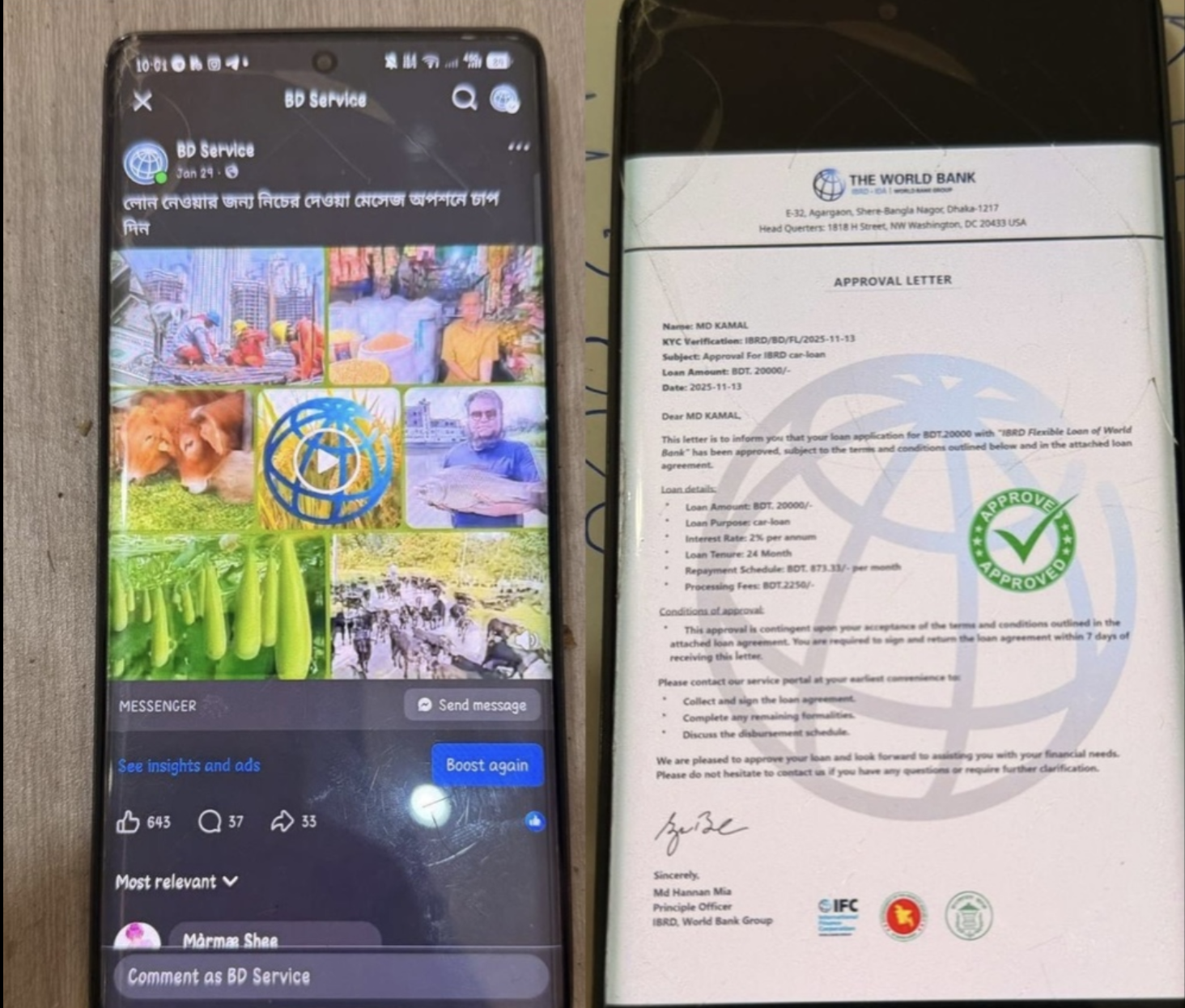 3月20日上午,警方突查位于森速区的一处住宅小区,现场缴获作案工具,包括一台一体机电脑及16部手机。初步调查显示,嫌疑人通过名为“BD service”的Facebook页面发布虚假贷款信息,冒充世界银行工作人员,并伪造文件骗取受害者信任。该团伙主要针对孟加拉国民众,并以柬埔寨作为跨境诈骗据点。 警方已将嫌疑人及相关证物移交金边市警察局依法处理,同时正追查幕后主使。官方呼吁房屋出租业主加强对外籍租客的审查,防止住宅被用于非法活动。 洪玛耐总理此前强调,政府将在今年4月前全面清剿电信诈骗犯罪,坚决维护国家安全与社会秩序,确保柬埔寨不成为跨国网络犯罪的藏身之地。