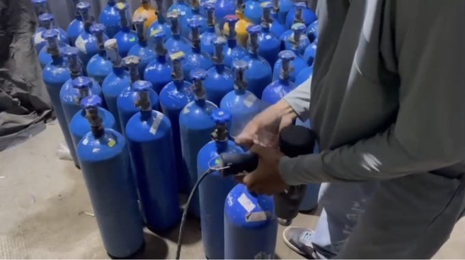 泰国华人网讯 3月26日,越南胡志明市警方侦查局成功捣毁一非法贩运“笑气”(N₂O)的有组织团伙,抓获三名嫌疑人,并初步查实该团伙交易总额超过100亿越南盾。 被捕嫌疑人分别为22岁的主谋黄德强(西宁省籍)、24岁的潘清达(胡志明市籍)及28岁的阮氏云(安会西坊籍)。警方通过情报收集,于3月21日清晨突击检查陈泰协坊黎文强街一处房屋,当场查获30个笑气钢瓶、大量橡胶气球及阀门;后续调查中又缴获59个钢瓶,总重量超过300公斤。