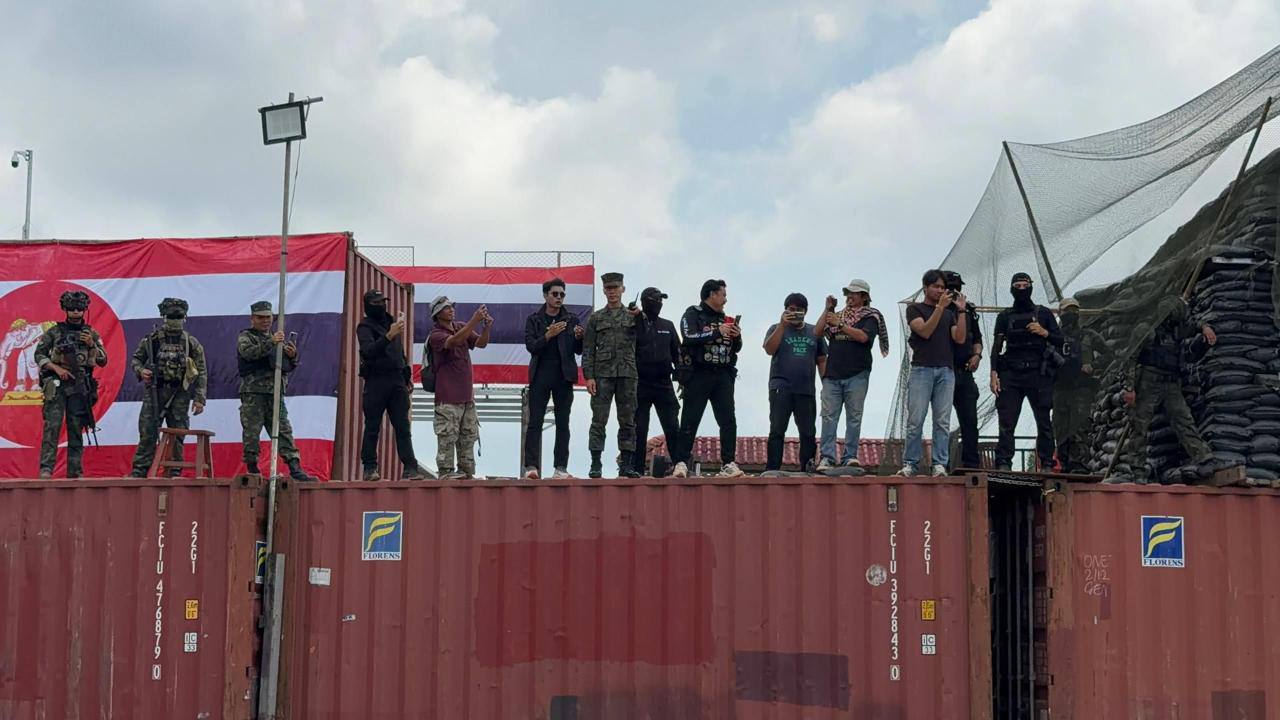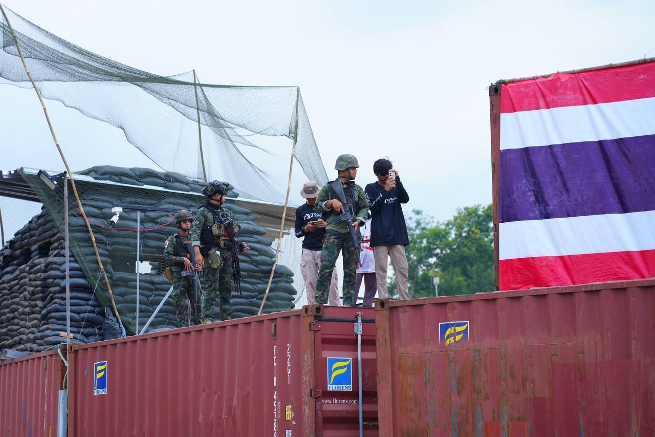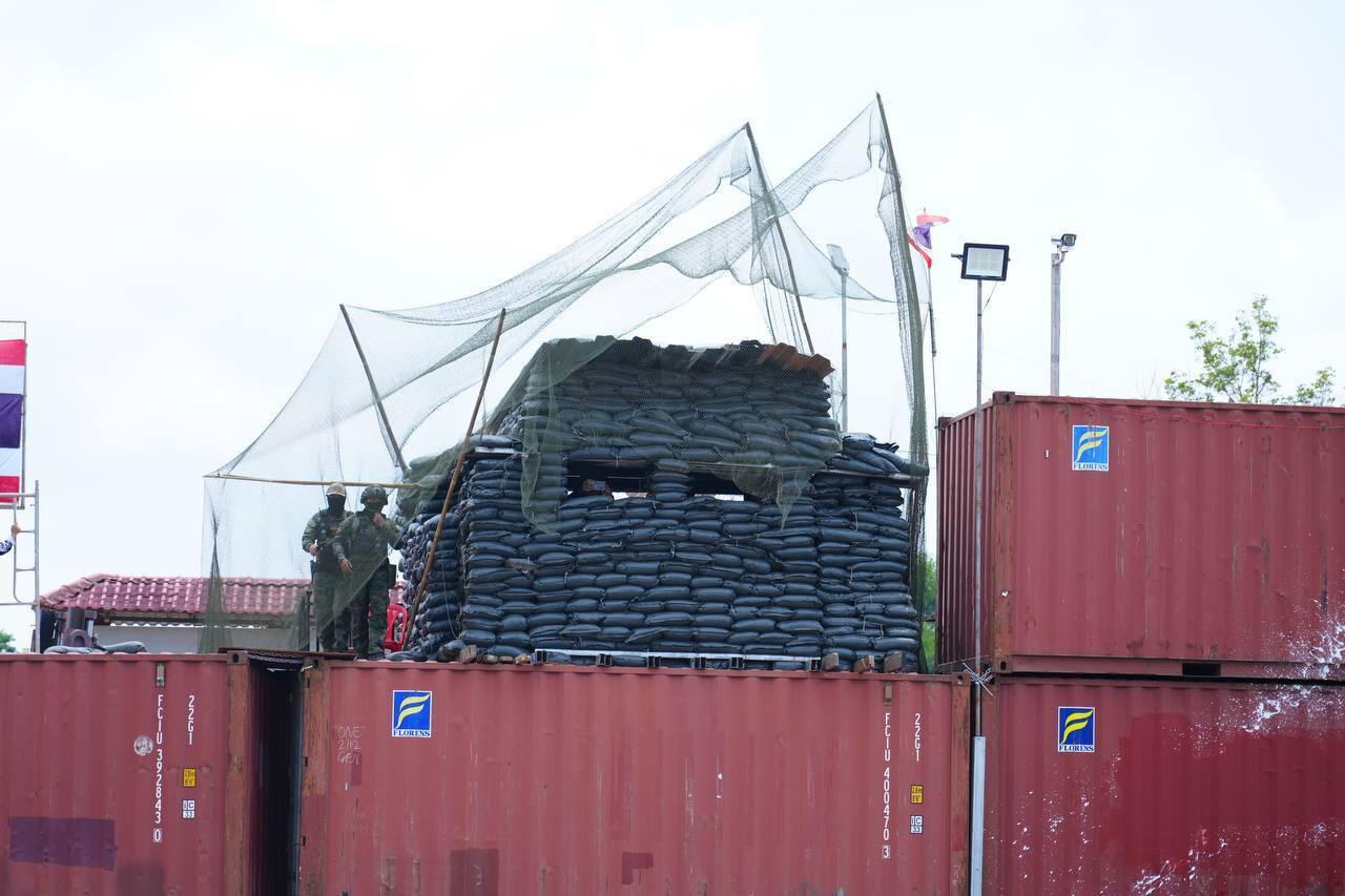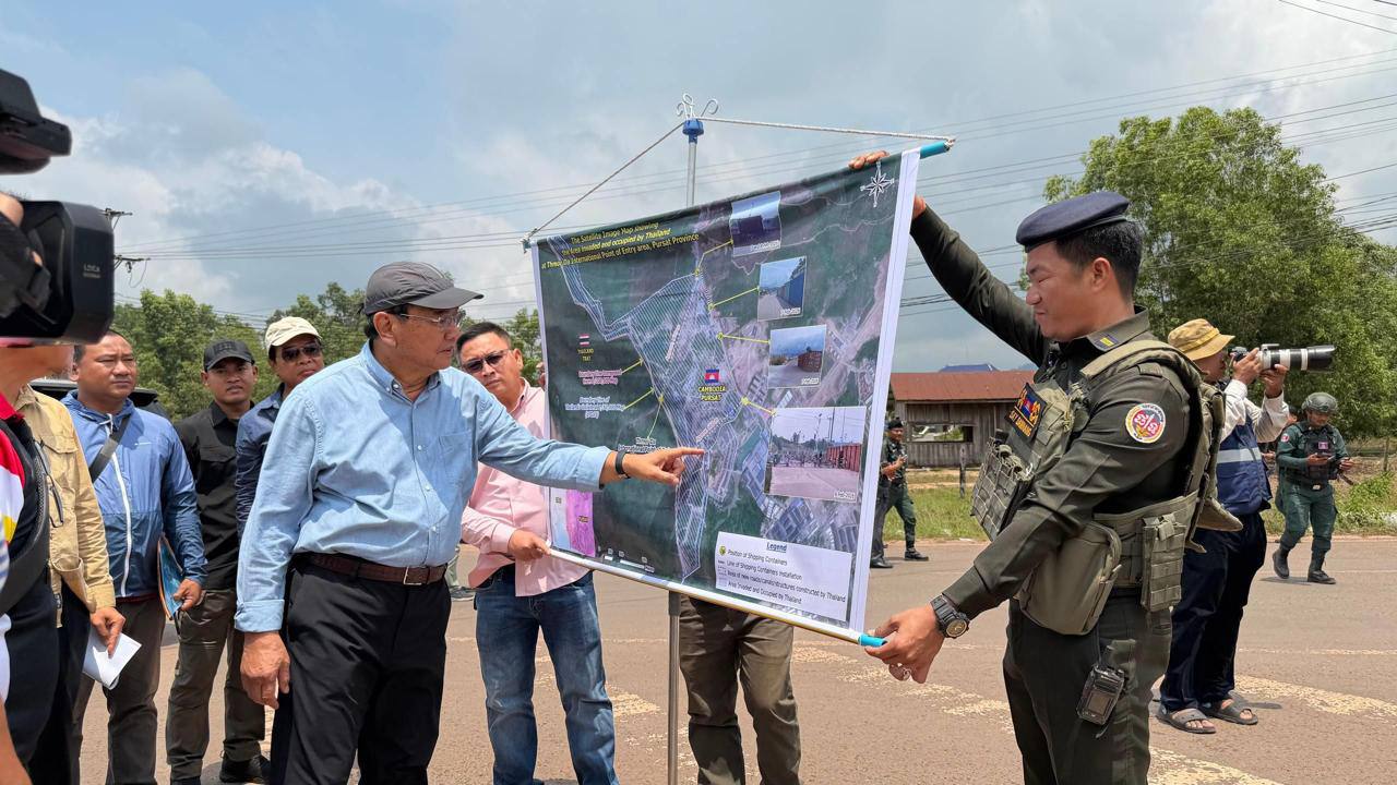 泰国头条新闻社讯 2026年3月27日,柬埔寨副总理兼外交部长布拉索昆率团前往菩萨省特莫达柬泰边境争议区域,向各国驻柬使节及国际组织代表展示最新领土分界图,并严厉指控泰国军队再次侵犯柬埔寨主权。 通报显示,继2026年2月7日泰军在菩萨省新社会村(新赌场路口)违规设置集装箱路障后,3月26日上午,泰军再次在该点增设3个集装箱,并加装铁丝网,进一步强化军事管控。