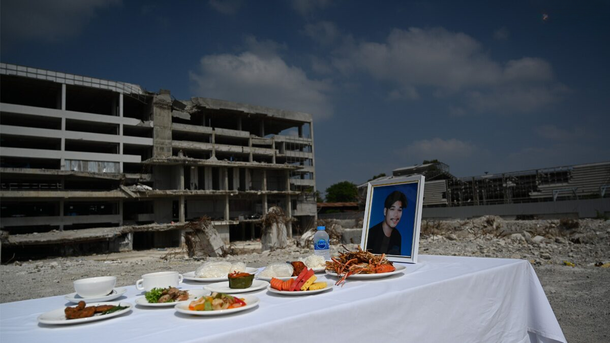 仪式由审计署官员及项目承建方ITD-CREC联合体共同主持,并邀请来自卧佛寺的僧侣主持诵经祈福。现场准备了食物供僧侣供养,以积累功德并悼念逝者。 事故发生地目前仍处于清理后的状态,仅剩部分结构残骸和钢筋裸露在外。相关部门已基本完成废墟清理工作,并计划将土地归还审计署使用,但后续建设安排仍待进一步明确。 多名遇难者家属在现场表达强烈不满,质疑事故原因至今未被彻底查清,相关责任人也未受到应有追责。一位母亲表示,她的儿子在事故发生前仅工作两天便不幸遇难,至今仍无法接受现实。“我们每天还会给他发信息,只想再听到他说一句话。”她情绪激动地说道。