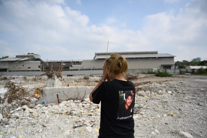 泰国华人网讯 2026年3月28日上午,泰国审计署(OAG)在位于乍都乍周末市场区域的原办公大楼旧址举行事故一周年纪念仪式,悼念2025年3月28日地震引发的大楼坍塌事故遇难者。该事故共造成93人死亡、3人失踪、8人受伤。 当天现场气氛沉重,众多遇难者家属返回事故地点参加佛教功德仪式。部分家属走进仍残留瓦砾与建筑残骸的区域,情绪崩溃,泪流不止。许多人表示,尽管时间已过去一年,但失去亲人的痛苦依然难以承受,相关画面至今挥之不去。