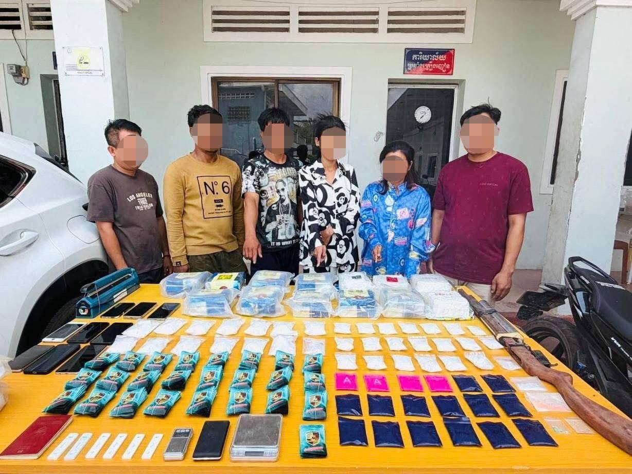 执法人员在现场缴获各类毒品总计约15公斤,包括14公斤冰毒、332克WY疯药及1.1公斤氯胺酮。同时,查封了雷克萨斯NX200T汽车、3辆摩托车、一支改装枪、3台电子秤及大量包装工具和护照等作案证物。 目前,6名嫌疑人及查获证物已移送茶胶省初级法院审理。此次缉毒行动不仅切断了区域毒品流通渠道,也对贩毒势力形成了强有力的震慑,展示了柬埔寨多省宪兵部门协作与打击毒品犯罪的高效执行力。
