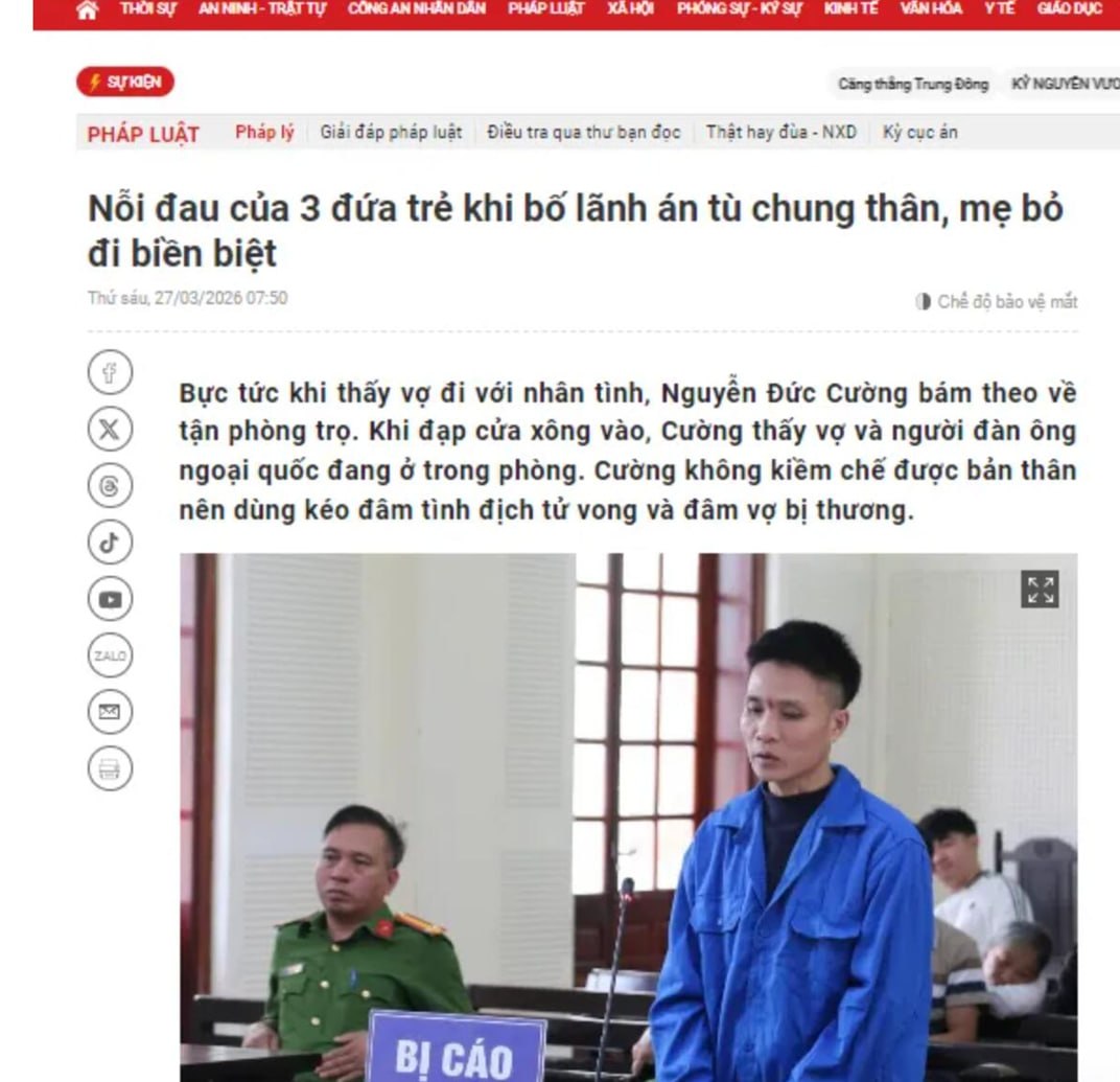 屋内,夏某赤裸上身,妻子站在一旁。阮德强先打妻子,随后用剪刀刺向夏某胸口和手臂,夏某当场倒在血泊中死亡。妻子试图逃跑,被抓后又被刺伤肋部,所幸捡回一条性命。 2025年3月23日,义安省人民法院开庭审理此案。阮德强在庭上痛哭,声称后悔并希望法律宽恕,以便回去照顾三个孩子和年迈母亲。但法院判处其无期徒刑。胡氏壬随后与阮德强正式离婚,远走他乡,至今杳无音讯,未曾探望或经济支持三个孩子。 该事件警示公众:异国他乡应守住行为底线。跨国婚外情可能引发不可挽回的悲剧。夏某原本只是去越南打工,却因一段不当情感,永远留在异国土地;阮德强锒铛入狱,三个孩子从此失去父母,家庭支离破碎。 |