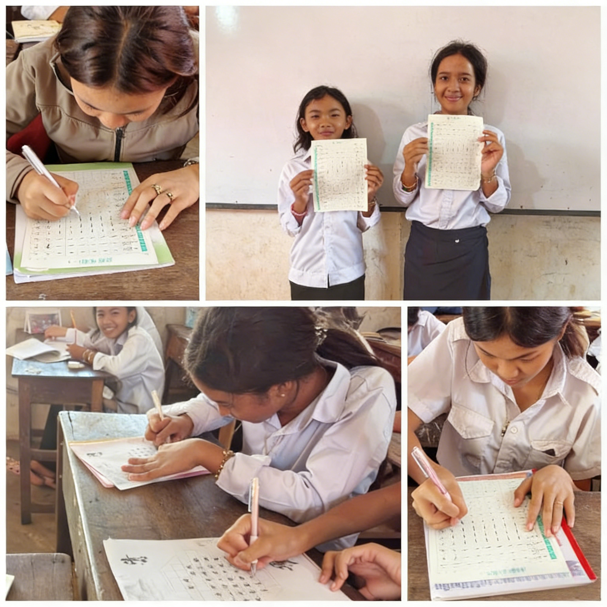墨香袅袅,浸润童心;笔韵悠悠,联结乡情。在觉群学校众多热爱中国书法的外派教师和华裔华文教师的用心培育下,硬笔书法文化将在校园里持续绽放光彩,陪伴一代代华裔学子成长,让他们怀揣文化自信与民族自豪,让中华文脉在湄公河畔绵延不绝,也让中柬友好的种子在笔墨书香中生根发芽、茁壮成长。 |