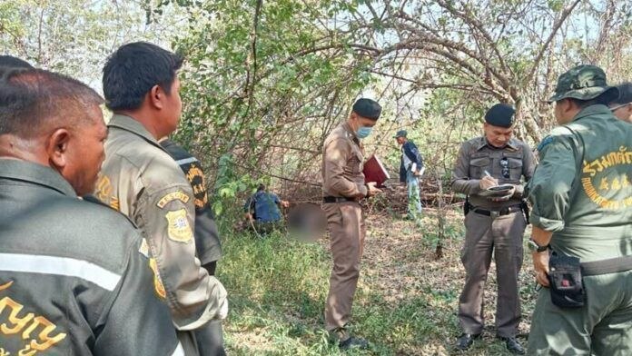 泰国华人网讯 2026年4月1日上午8时25分,泰国华富里府帕塔纳尼空县科克萨隆街道8号村的一片木薯种植园内,发现一具男性尸体,死者为56岁的塔翁·皮姆本先生。尸体胸部左侧有7至8处枪伤,因尸体已腐烂,推测死亡时间可能已有数日。 警方在现场勘查时,发现两枚12毫米弹壳、181泰铢现金、一把折叠刀,以及一辆被遗弃的红黑相间本田Wave摩托车,经调查确认该摩托车属于死者所有。