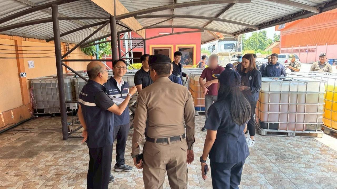 泰国华人网讯 2026年4月3日,泰国宋卡府府尹拉萨萨·奇楚下令,对位于沙道市坎查纳瓦尼特路的一家物流公司展开第二次全面检查,现场查获大量疑似非法燃油,引发关注。 执法人员在现场发现地下与地上油罐合计储存柴油约10万升,其中地下油罐储量约5万升,另有35个地上油罐,每个容量为1000升。初步调查显示,这批燃油由中国投资者出资,通过马来西亚渠道非法进口并进行囤积。