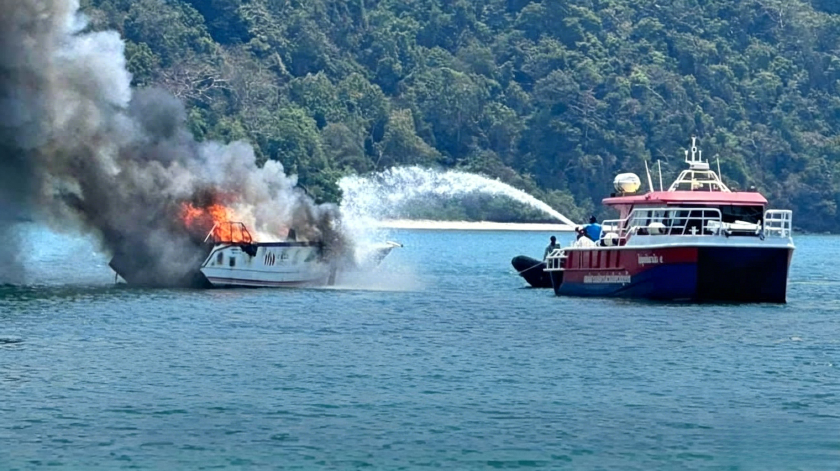 泰国华人网讯 2026年4月6日上午11点左右,泰国普吉岛普吉府维吉特区可可码头发生一起快艇爆炸事故,一名泰国导游不幸身亡,另有5名船员受伤。 事故发生在一艘名为“龙舌兰”号的双引擎快艇上。当时该船停靠在码头进行维修与更换发动机机油作业,船上共有6人,包括导游、技术人员及船员。爆炸发生后,现场迅速起火,志愿消防员及救援人员第一时间赶赴现场进行处置。 据现场监控画面显示,快艇在未出现明显异常的情况下突然发生爆炸,船上人员慌忙逃生。为防止火势蔓延至周边船只,消防人员将起火快艇拖离码头,并在约10分钟船程外的塔帕奥亚岛附近控制火情,但该船最终沉没。