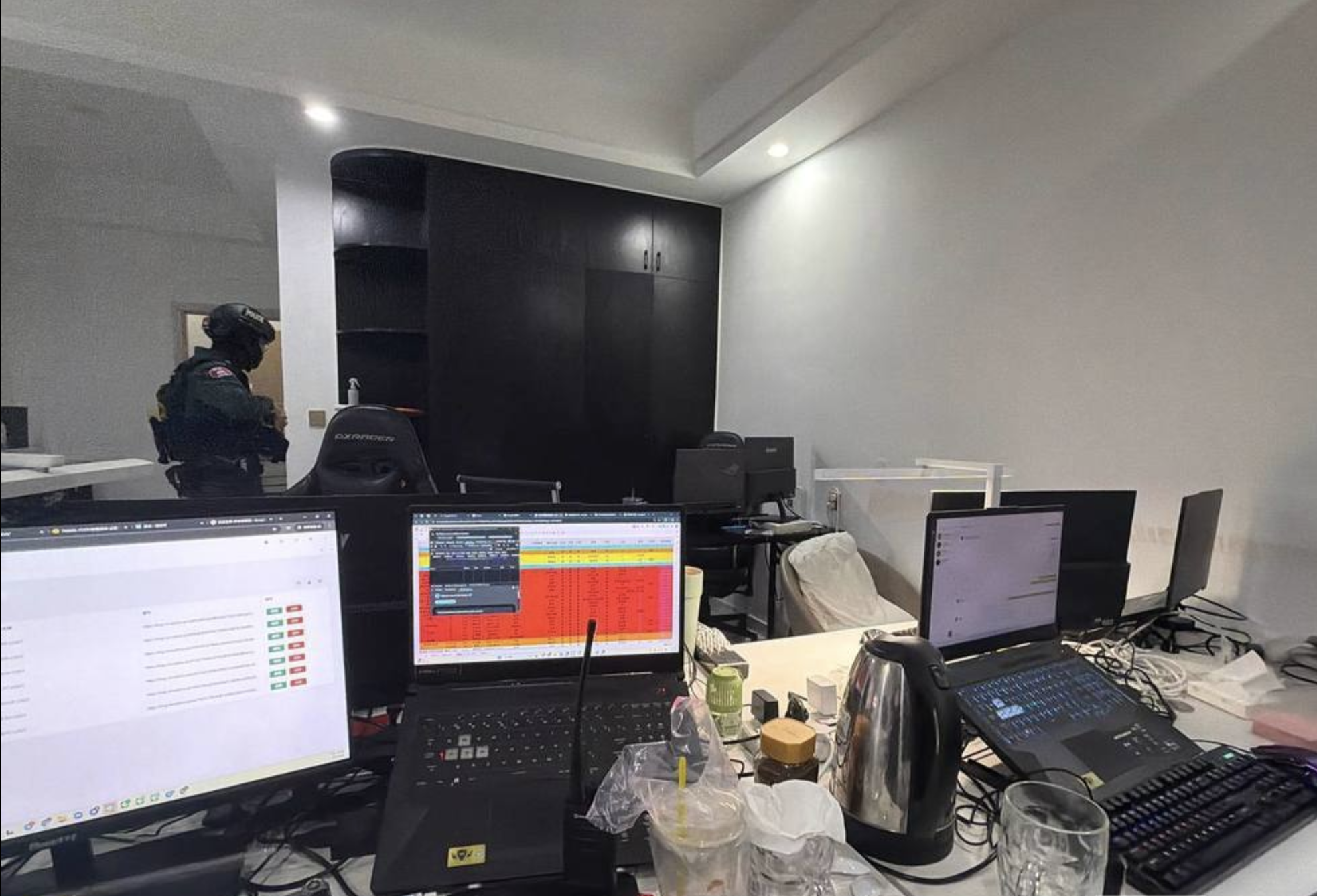 泰国华人网讯 柬埔寨金边市警方于4月6日在森速区捣毁一处电信诈骗窝点,共拘捕27名外籍嫌疑人,其中包括1名马来西亚人、3名中国大陆人员及23名台湾人员。 此次行动由多警种联合开展,现场查获大量作案设备,包括3台电脑主机、227部手机、19台显示器以及22台笔记本电脑,为后续侦查提供了关键证据。