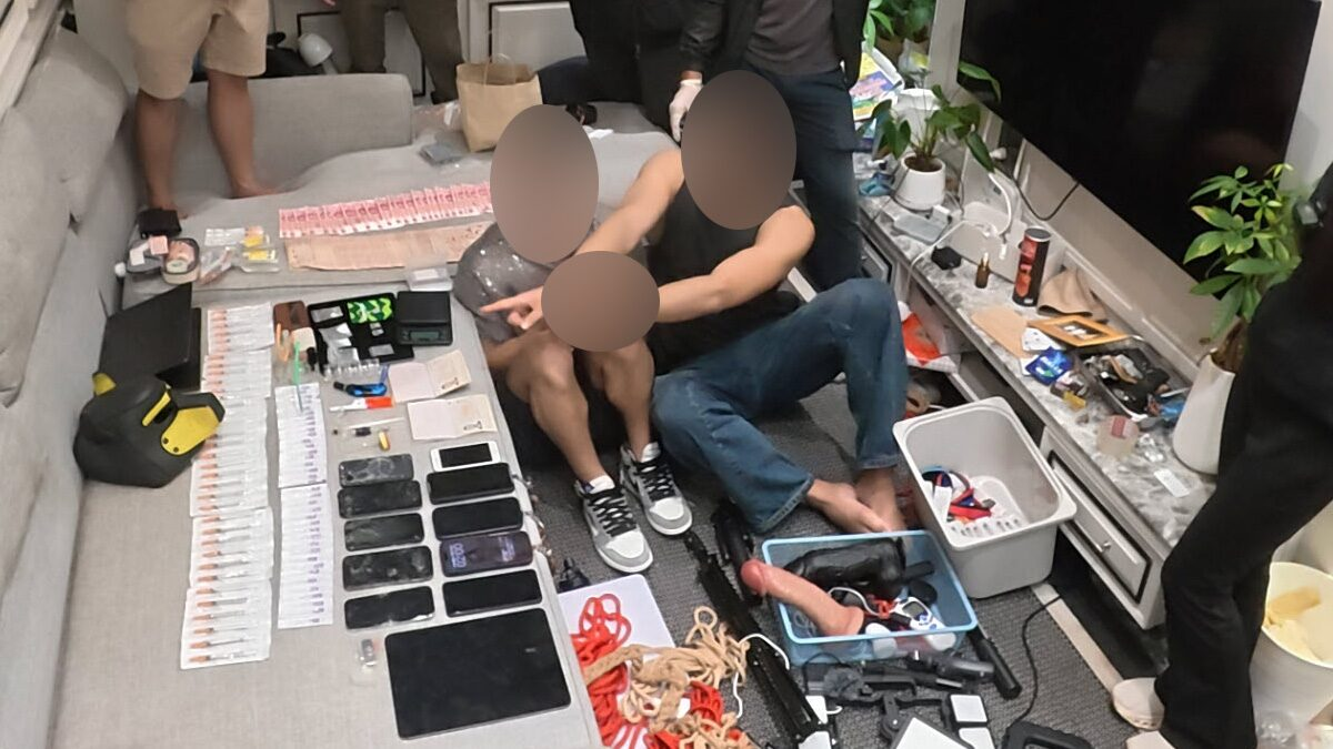 在现场搜查过程中,警方查获大量证物,包括约100支注射器、冰毒和摇头丸共4袋、多种吸毒工具及电子秤、手机10部、iPad 1台(内含大量男男性行为色情视频)、大量色情拍摄设备及性玩具,以及现金约10万泰铢。警方表示,这些物品与毒品使用及不雅内容制作活动存在明显关联。 调查进一步发现,两名嫌疑人为X平台上的成人内容创作者,拥有约60万粉丝,长期发布带有BDSM内容的图片与视频。警方初步怀疑其不仅涉毒,还可能涉及制作及传播淫秽物品,目前相关证据仍在进一步取证中,后续或追加指控。