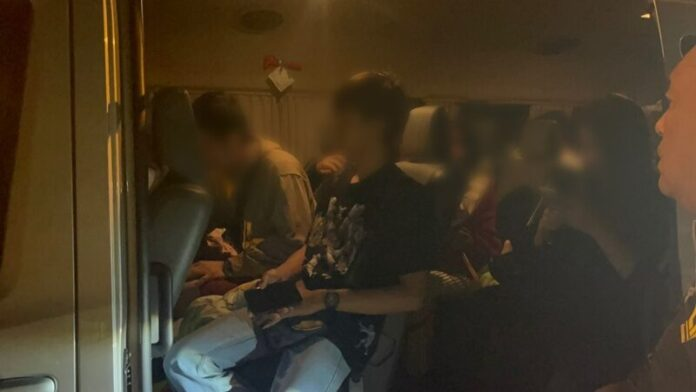 泰国华人网讯 据泰媒考宋报道,4月11日,泰国高速公路警察在宋干节来临前加强路面执法,在益梭通府玛哈差那猜县库芒镇一处公路成功拦截一辆可疑面包车,并查获6名老挝籍非法劳工。 警方表示,当天执法人员在2083号公路32公里处设卡巡查时,发现该面包车行驶异常,随即示意停车检查。经核查,车内共有18名乘客,其中6名老挝籍人员混坐在普通泰国乘客之间,试图掩盖身份。