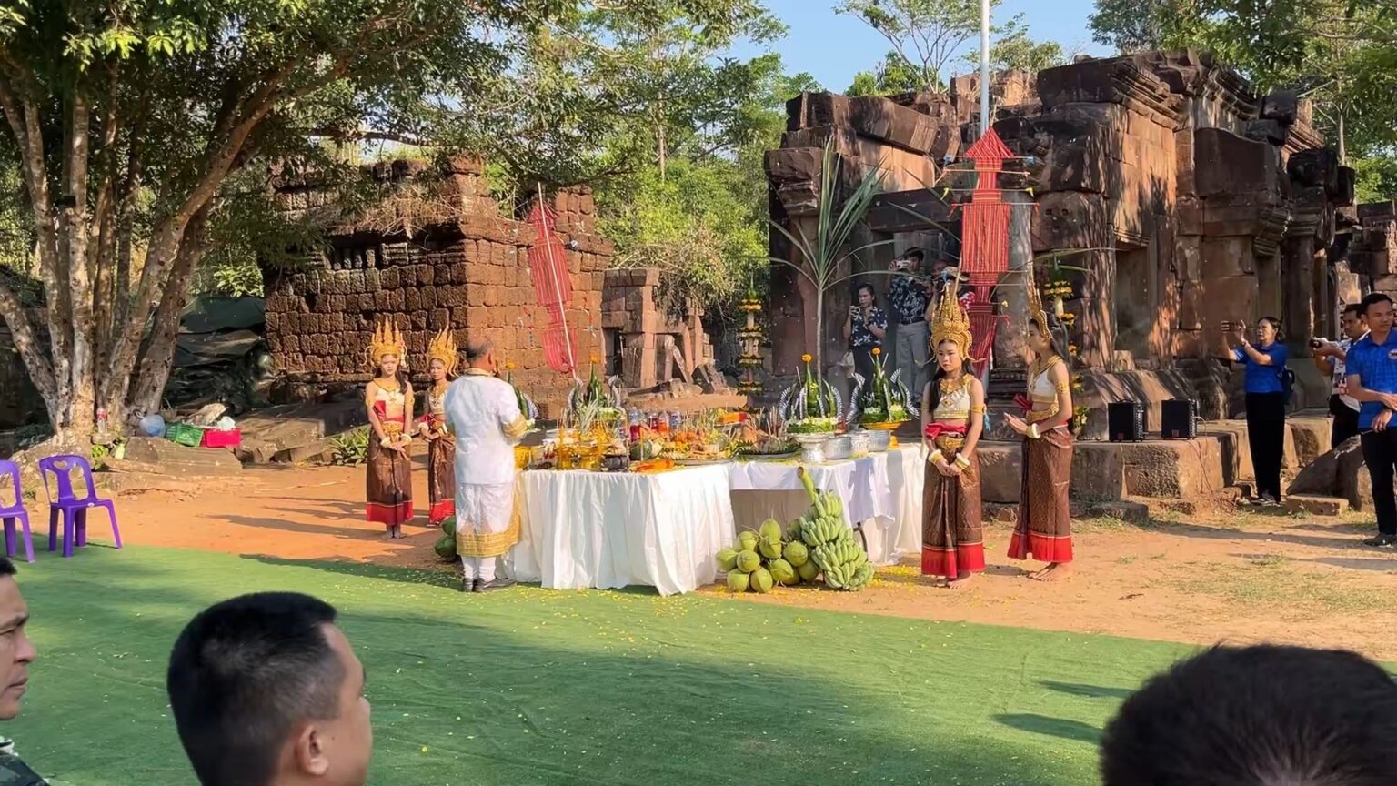 在安保措施方面,相关部门采取高规格防控,仅允许政府官员及安保人员参与仪式,全面禁止普通民众进入现场。同时,现场部署多名军方人员进行警戒,确保活动在可控范围内进行,避免突发风险。 仪式当天,队伍自寺庙入口有序出发,缓步前往主殿区域。主殿内提前摆放好各类祭品,并由婆罗门祭司依照传统流程主持整个仪式,场面庄重而肃穆。与往年相比,今年在表演环节明显“瘦身”,原本超过100名舞者参与的传统舞蹈,仅保留5名舞者进行象征性演出,以缩短整体时长。