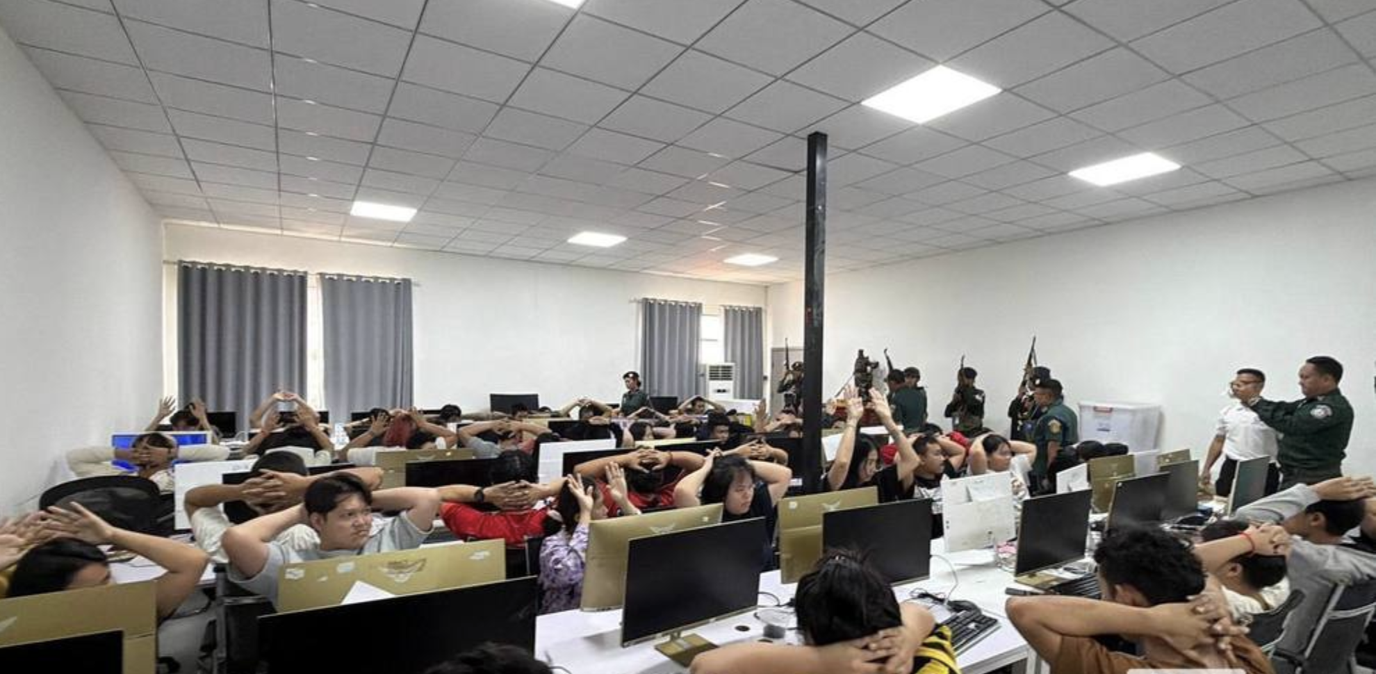 泰国华人网讯 4月10日,柬埔寨蒙多基里省联合执法力量在省会森莫诺隆市展开突击行动,成功捣毁一处隐藏在商业建筑内的电信网络诈骗窝点,现场控制外籍人员262人,其中中国籍人员达135人,案件规模引发关注。 此次行动最初源于印度驻柬使馆请求,协助寻找失联公民。执法人员在进入目标建筑调查时,发现内部存在大量外籍人员异常聚集,情况明显异常,随即果断升级行动,对整栋建筑实施封锁与全面搜查。