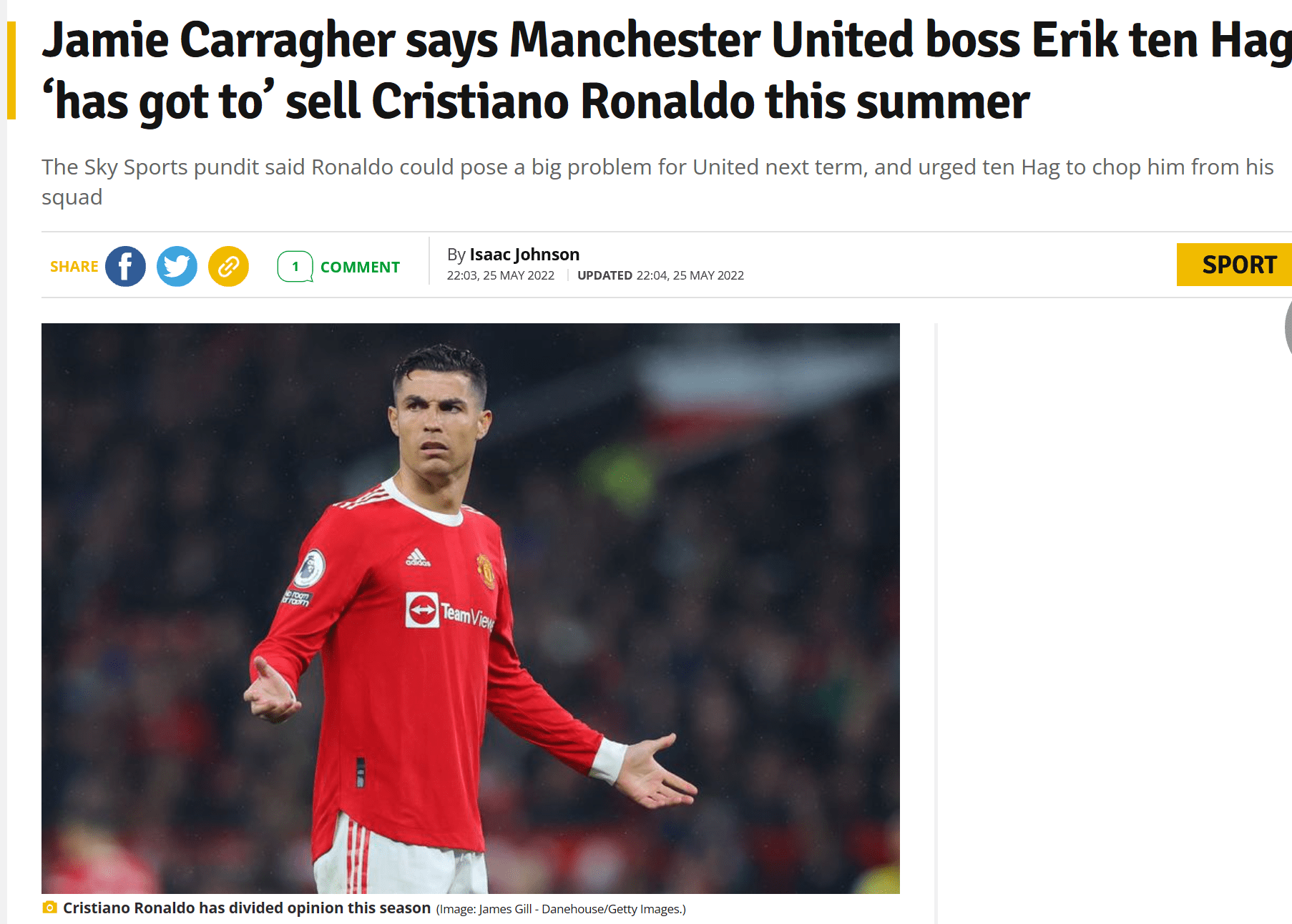 北京时间5月26日,据英国媒体《曼彻斯特晚报》报道,近日利物浦名宿卡拉格在一档节目中表示,今夏曼联新帅滕哈格必须做出一项重要决定,那就是卖掉葡萄牙球星C罗,并阐述了为什么出售C罗是必要的。 本赛季,C罗以24粒进球成为了曼联队内的最佳射手。但是,他也遭受到了外界不少批评,认为他导致球队缺乏凝聚力。更有甚者表示,C罗已经37岁了,他在赛场上不再能发挥什么作用了。利物浦名宿卡拉格直言,曼联下赛季不可能让一个将近40岁的人来领导球队。 卡拉格表示,滕哈格来到老特拉福德之后应追随瓜迪奥拉和克洛普的脚步,做出出售C罗的决定。瓜迪奥拉执教曼城之后,将乔哈特扫地出门,而克洛普在担任利物浦主帅后出售了本特克。卡拉格说道:“我确信,他必须这样对待C罗。” “本赛季,我一直在这样说。C罗是有史以来最伟大的球员之一,但将他带回曼联并不是一笔好签约。下赛季曼联的中锋不能是一个38岁的球员,即使他真的还能进球,但对曼联来说,他仍然不合适。如果他不能每周都出场,那么下赛季对曼联来说,这将是一个巨大的问题。本赛季,我们已经看到了这一点,C罗在被换下场时,总是会吵吵闹闹。主教练刚到球队时总是最有权力的,如果我是曼联主帅,我会选择卖掉C罗。” 本赛季,曼联在杯赛赛场早早出局,在英超联赛仅获得第六名,无缘下赛季欧冠。由于卡瓦尼的伤病、拉什福德状态低迷、格林伍德的场外事件以及马夏尔外租,曼联经常遭遇锋线缺人的情况,而C罗本赛季在各项赛事为球队攻入了24球,是队内头号射手。 (编辑:小罗) |