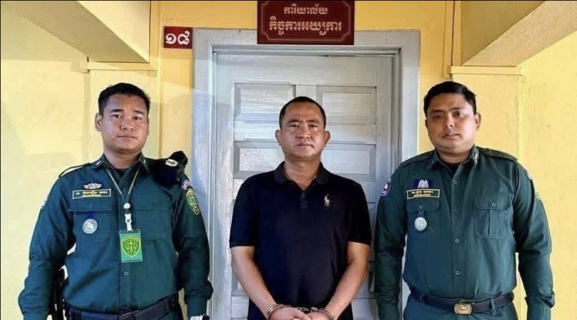 泰国华人网讯 柬埔寨干拉省曝出一起执法人员涉案的恶性事件。一名副警长被指利用职务之便恐吓中国公民并索取钱财,目前已被警方逮捕并收监,案件引发广泛关注。 从起因来看,事件源于一名中国公民于2026年4月13日向干拉省森宝布市警方报案。受害人XIONG PAN(28岁)表示,自己在当地一处建筑工地工作期间,遭遇自称警方人员上门施压索款。 据调查,4月6日下午,干拉省警察局副局长奥本纳伙同另外4人进入施工现场,以“属地警察”身份行事,并指称受害人曾供职的“太子集团园区”拖欠电信运营商Metfone网络费用13万2271美元,要求其代为偿还相关款项。