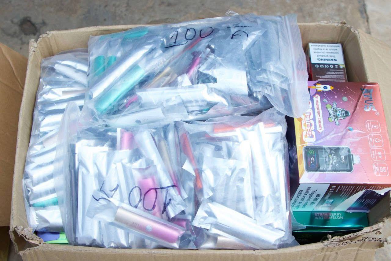 在抓捕行动中,警方还查获大量涉案物品,包括一把折叠刀,以及多种疑似毒品和工具:75包疑似白色粉末、9颗绿色药丸、58包“马粉”及3瓶黄色液体。此外,现场还缴获564个电子烟管、13大袋电子烟弹、2台毒品秤及2台包装机等用于分装和贩运的设备。