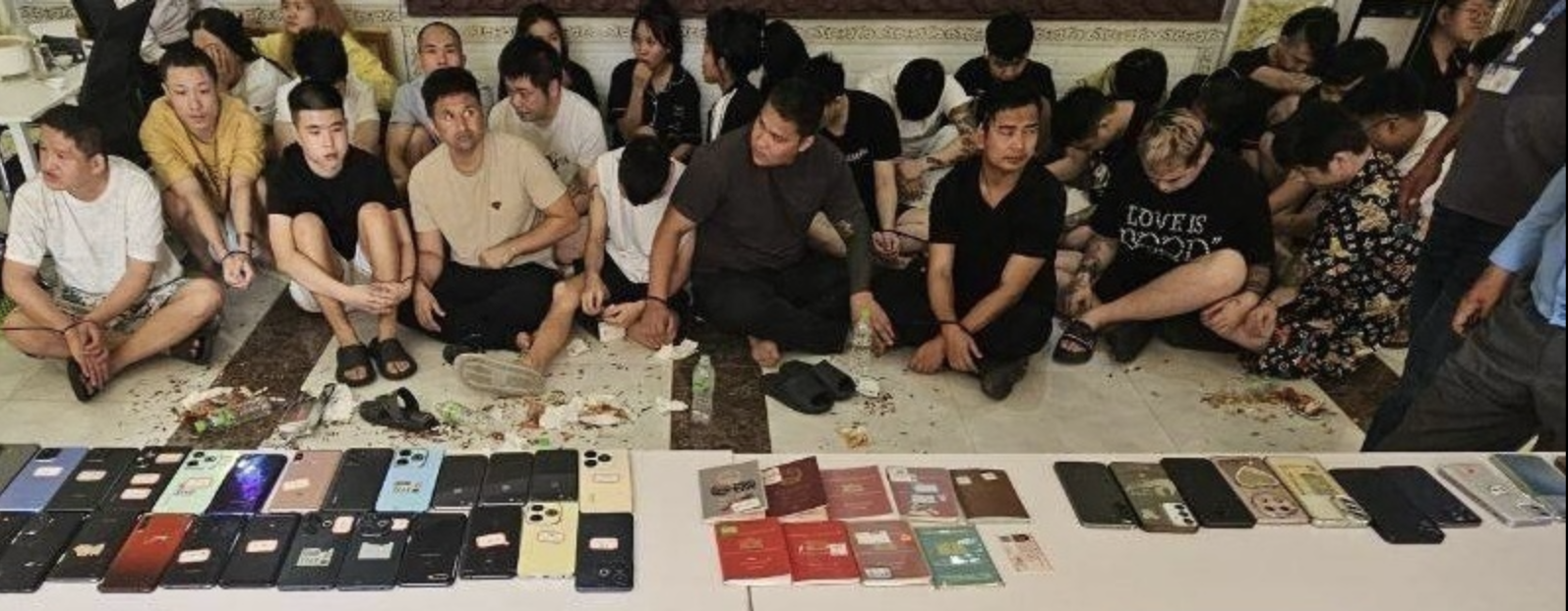 在磅逊港市云壤区一处出租屋内,警方当场抓获4名中国籍人员,并查获用于作案的电脑及手机设备。同一地区另一处平房内,警方再度行动,抓获36名外籍人员,同时缴获多台电脑及手机等电子工具,疑似用于实施网络诈骗操作。 此外,在西哈努克市一处出租别墅内,执法人员再逮捕5名中国籍人员,并现场查获相关电子设备,进一步扩大了此次打击行动的成果。 值得注意的是,在此次被捕人员中,年龄最小者仅18岁,为中国籍男子,其涉案情况仍在进一步调查中。