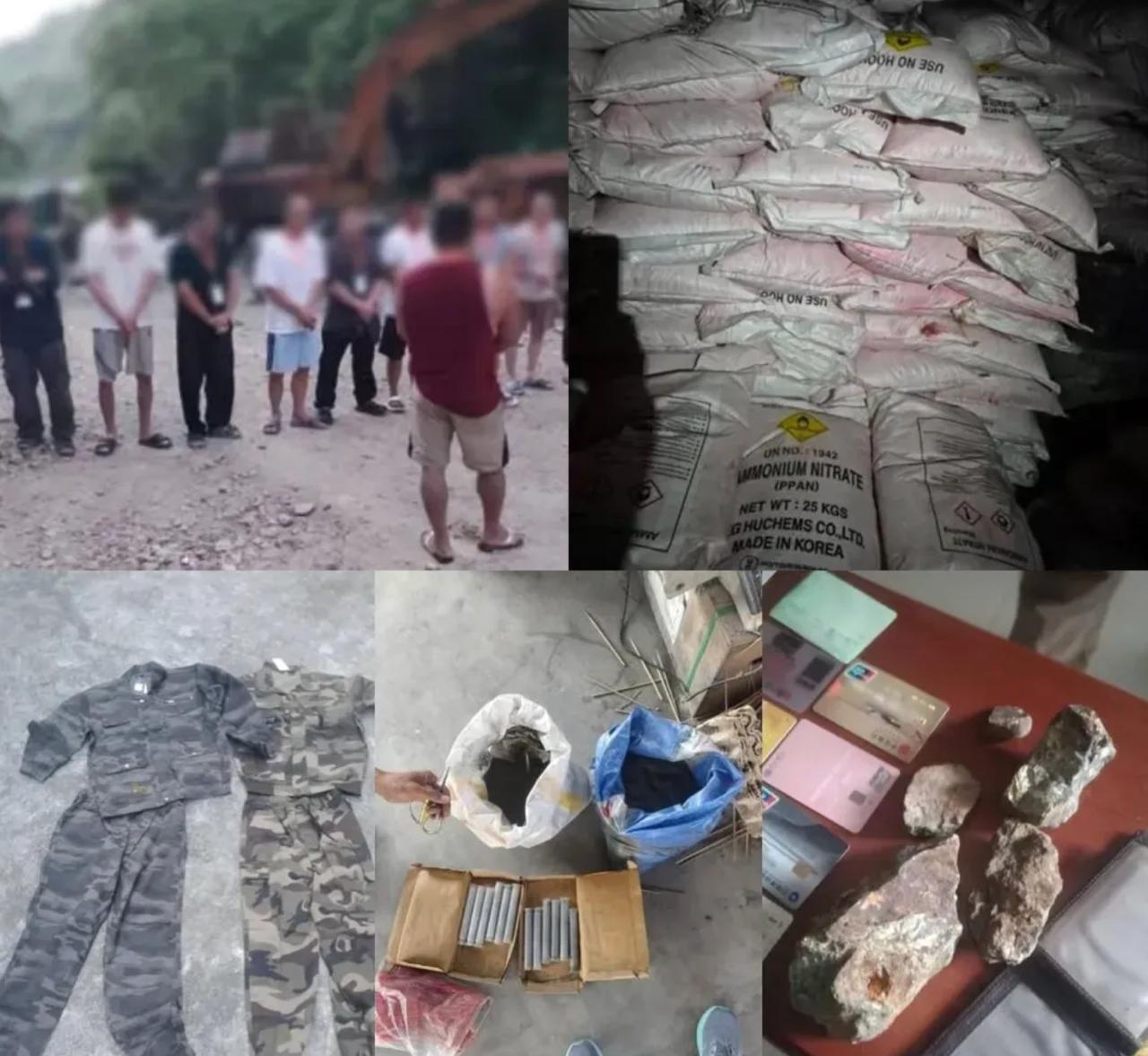 据官方通报,被捕的20名中国公民均以旅游签证入境菲律宾,但已出现逾期居留情况,涉嫌违反菲律宾《移民法》相关规定。在初步处理层面,相关人员已被列入移民违规调查范围。 然而,案件在进一步搜查过程中性质发生变化。执法人员在现场发现与采矿作业相关的大量设备及物资,包括矿产资源样本、重型机械设备以及爆炸物等危险物品,显示该地点可能涉及未经许可的采矿活动。