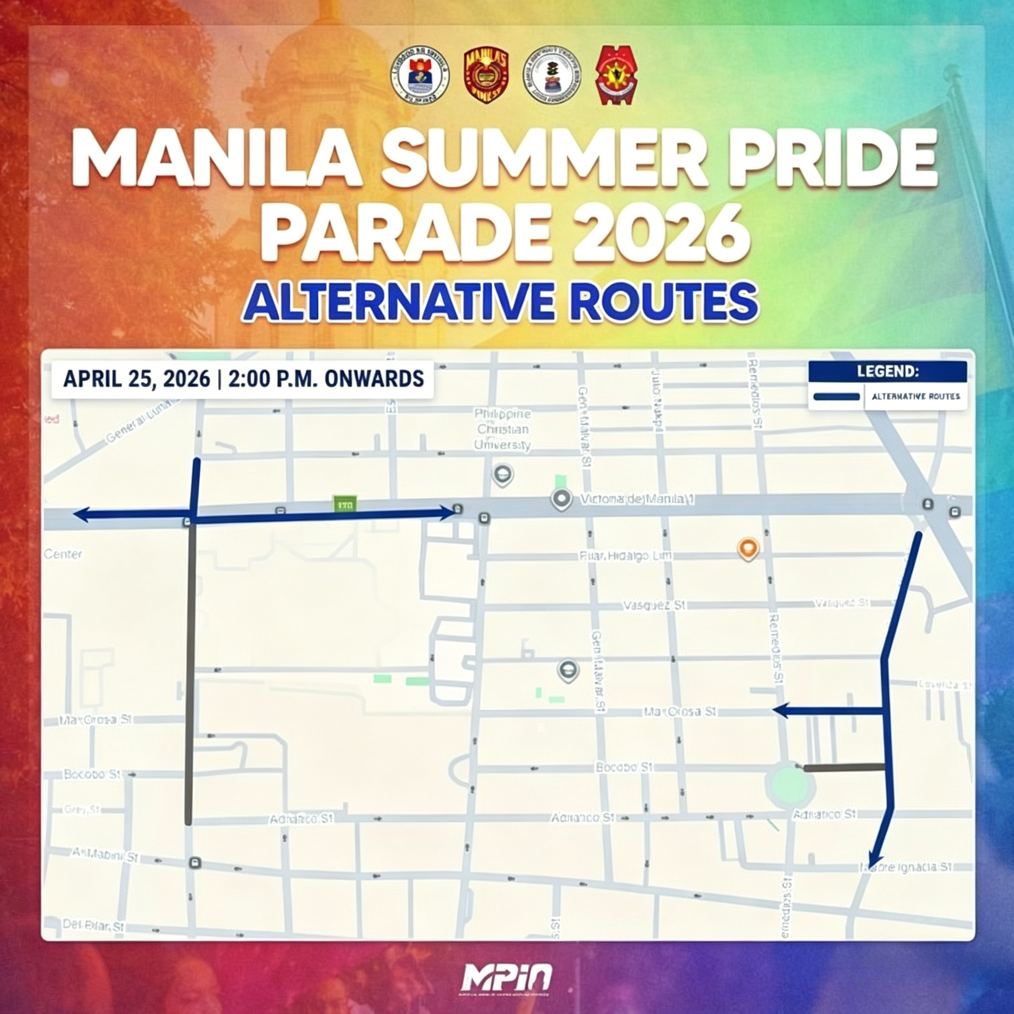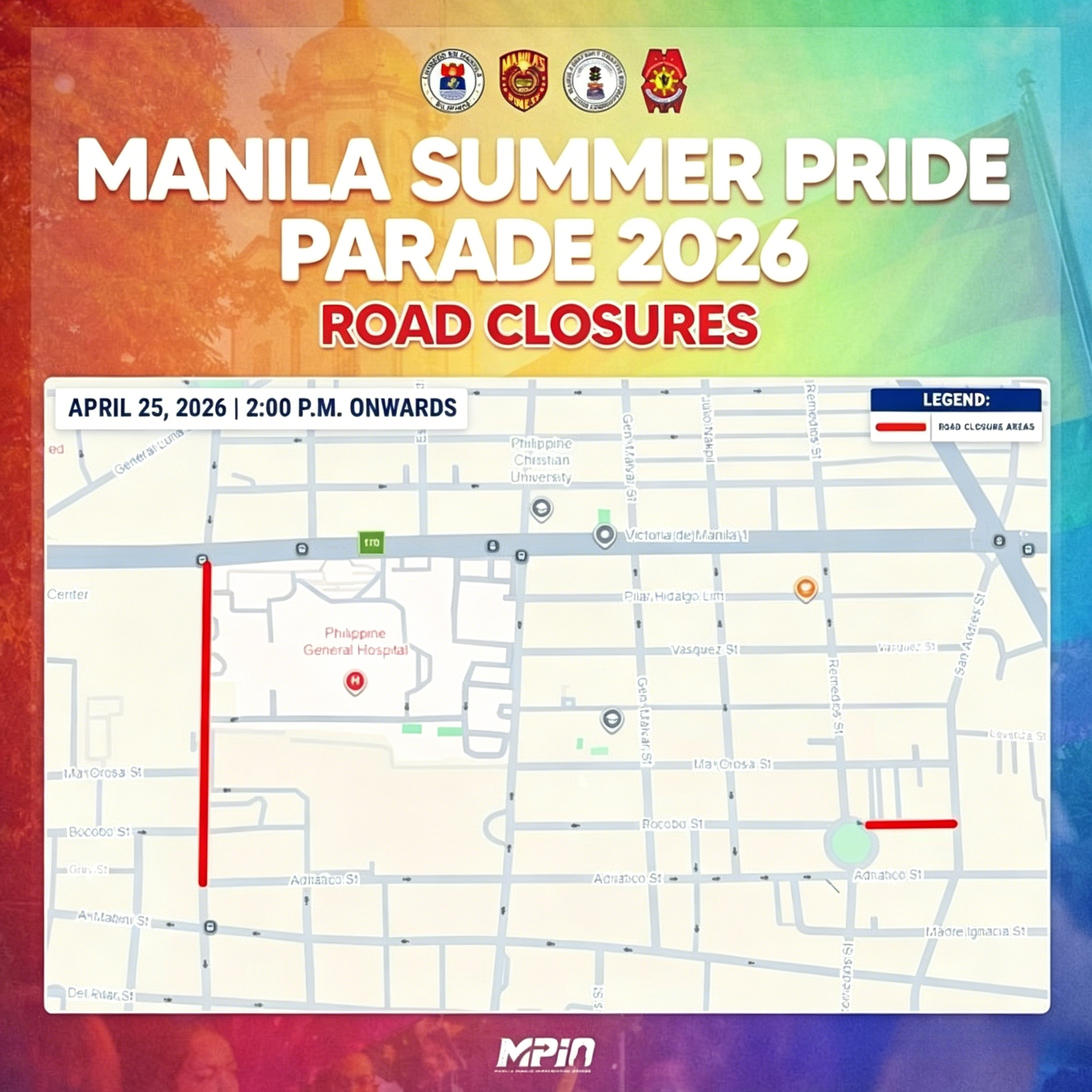 由于活动举行,市内多条道路将于下午起实施交通管制。自4月25日下午2时起,P. Faura街(Taft大道至Adriatico街路段)及J. Bocobo街(San Andres街至Remedios Circle路段)将禁止车辆通行。 当局同时安排改道路线。由P. Faura街驶出车辆可选择进入Taft大道左转或右转通行;从San Andres街方向行驶的车辆可右转进入Ma. Orosa街,或继续前往Roxas Boulevard辅路。