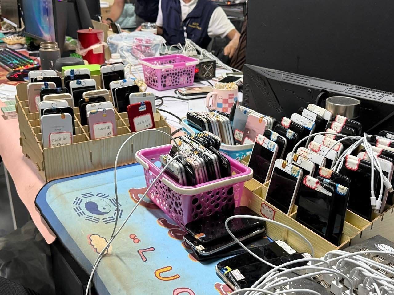 泰国华人网讯 4月24日,柬埔寨金边市联合指挥部组织多部门联合行动小组,对位于七玛卡拉区维尔旺乡3号村的宝丽城际大厦展开突袭检查,一举捣毁一处涉嫌从事网络诈骗活动的窝点,当场逮捕40名嫌疑人,并查获大量涉案设备与证据,行动震动当地。 据通报,此次行动在金边市市长坤盛(Khuong Sreng)及金边市警察局局长春纳林中将统一指挥下展开,由金边市法院副检察官森亨协调法律程序,七玛卡拉区政府配合执行。执法人员进入大厦后迅速控制现场,对多个楼层展开逐一排查,锁定多个涉嫌从事非法活动的办公区域。 经现场调查,执法人员共查实三类违法犯罪行为。第一类为投资类诈骗,共涉及22名嫌疑人,其中中国籍20人、俄罗斯籍2人。警方在现场查获手机528部、台式电脑35台、主机箱30个及多台笔记本电脑。经初步电子取证显示,该团伙通过虚假投资项目诱导受害者投入资金实施诈骗。 第二类为“美女诱导”赌博诈骗,涉及12名孟加拉国籍人员。现场查获笔记本电脑5台及多部手机。警方指出,该团伙利用虚假女性身份及图片吸引受害者,再引导进入假冒赌博网站进行投注,从中实施诈骗牟利。