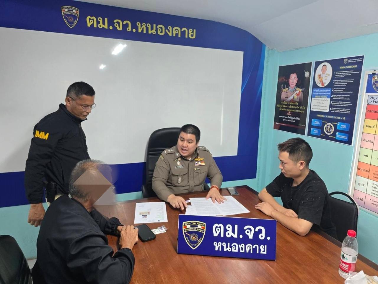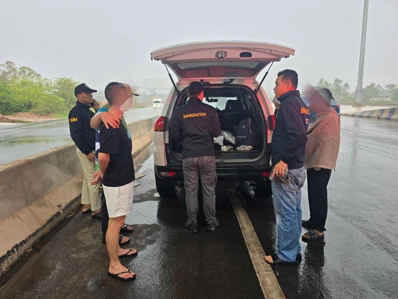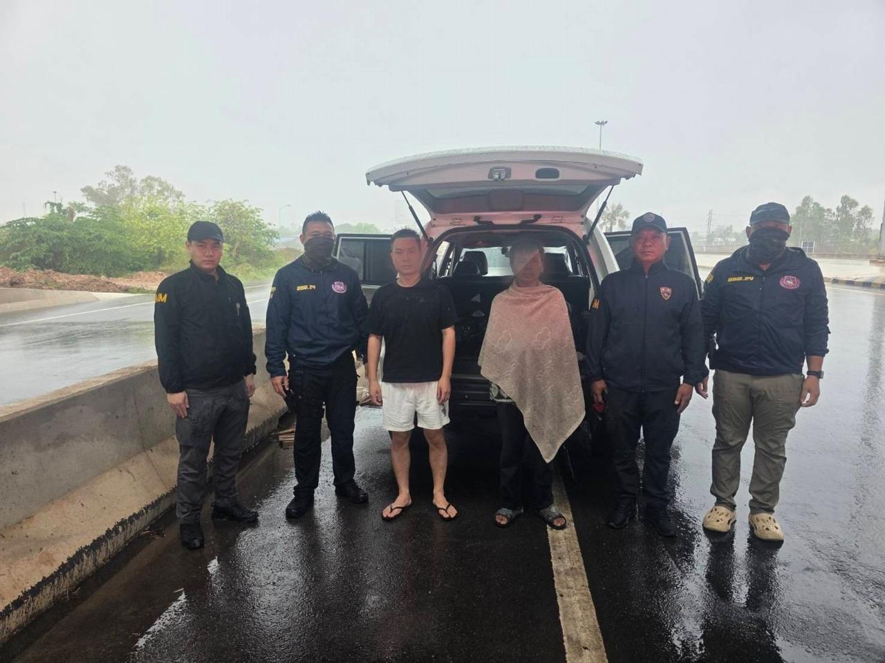 泰国华人网讯 2026年4月27日,泰国廊开府移民局在局长纳帕多上校带领下,联合多名执法人员展开边境巡查行动,成功查获一起非法入境案件,一名中国籍男子与一名泰国司机在接应途中被当场拦截。 事件发生在廊开府一处公路旁的凉亭附近。当时,执法人员发现一辆悬挂曼谷牌照的三菱帕杰罗SUV正在等待接应人员,随即展开检查,并在现场控制住两名涉事人员,分别为34岁的中国男子昆比(MR. KUN BI)以及53岁的泰国司机吉拉瓦,后者来自黎逸府。