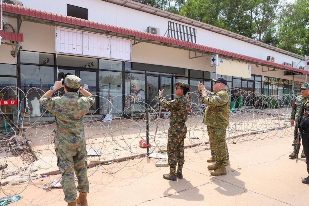 在具体行程中,柬埔寨方面组织包括美国、中国、俄罗斯、日本、澳大利亚以及多个东盟成员国在内的武官代表团,前往菩萨省班托莫达地区,对相关边境区域进行现场查看。该地区被认为涉及部分领土争议,长期以来备受关注。 在视察过程中,柬方人员向代表团介绍称,在部分边境区域发现泰方设置铁丝网及集装箱等设施,并就相关情况作出说明。柬方强调,此举旨在让国际代表更直观了解现场状况,同时推动双方在既有协议框架下进一步沟通。