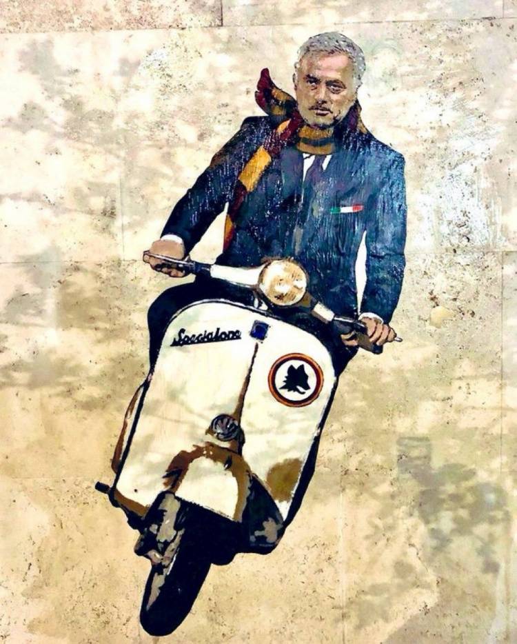在带领罗马队夺得欧会杯冠军之后,罗马城再次为穆里尼奥而疯狂。近日,罗马街头出现了新的穆里尼奥的涂鸦,葡萄牙教头化身“奥古斯都”(古罗马帝国开国皇帝屋大维),左手拿着罗马俱乐部logo,右手则高举欧会杯奖杯。 值得一提的是,早在去年夏天,罗马官宣穆里尼奥成为球队主帅时,罗马街头就出现了穆帅的创意涂鸦:葡萄牙教头骑着一辆小摩托。这一幕是致敬意大利经典影片《罗马假日》,随后穆里尼奥自己还现场还原了这一幕。而且,在一次日常生活分享中,可以在穆帅的办公室楼梯底下看到一辆小摩托。