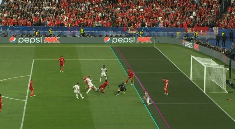 今夜的欧冠决赛,虽然皇马1-0击败了利物浦夺得冠军,但对于本泽马来说,在个人层面上来讲,还是有些许遗憾的。比赛中,本泽马曾在第43分钟打入一球,但因为VAR的一次误判,结果被吹成了越位。 当时,皇马中场过顶球吊入禁区,本泽马反越位卸下皮球后,面对利物浦的回防球员,非常艰难地将球回做。在点球点附近,双方陷入了混战,人仰马翻之后,皮球又回到了本泽马的脚下,法国前锋左脚直接兜射,皮球越过了利物浦门将阿利森的十指关,飞入球门。 不过,本泽马的这一进球被吹罚越位在先,而VAR在介入之后也确认了判罚。然而通过慢镜头回放,人们发现,这个球其实是利物浦球员法比尼奥碰给本泽马的,是法比尼奥的左腿不慎将球碰到了法国前锋的脚下,并不存在越位的理由。